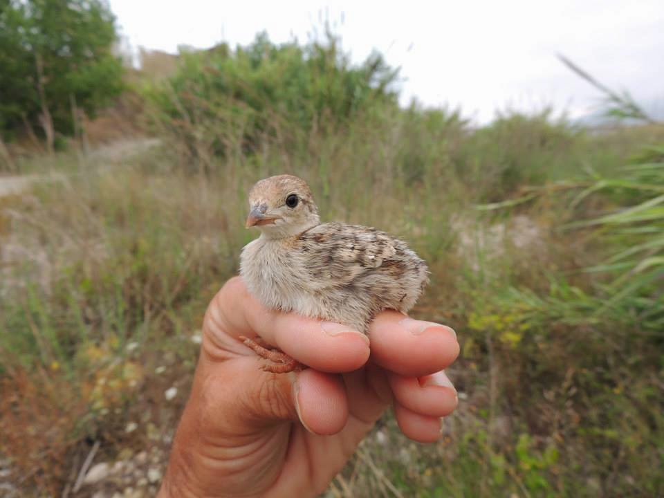 Un perdigón, de una pollada que iba con la madre